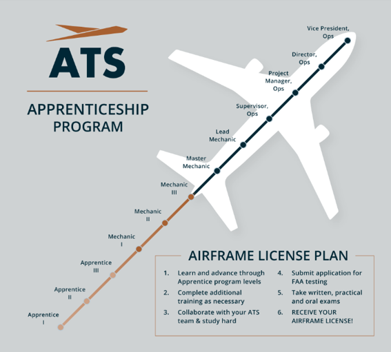 Yes. After a minimum of 18 months an Apprentice Mechanic may be eligible to become an FAA certificated Repairman. After this, a Mechanic may also become eligible to study for and test to become an FAA certificated Airframe Mechanic. ATS offers guidance in the process and reimbursement for testing fees.