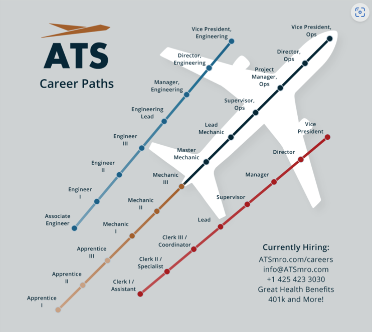 After an Apprentice completes the third level of Apprenticeship and graduates, they automatically become an Aircraft Mechanic (which comes with a pay raise) and continue working for ATS, usually for the same crew and lead as before.